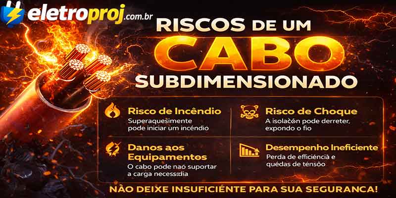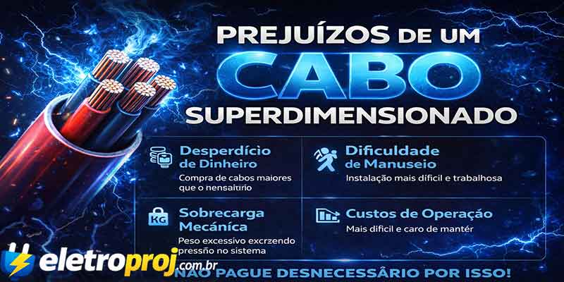 Um cabo superdimensionado não oferece risco de segurança, mas gera prejuízo financeiro direto e dificuldades na instalação.