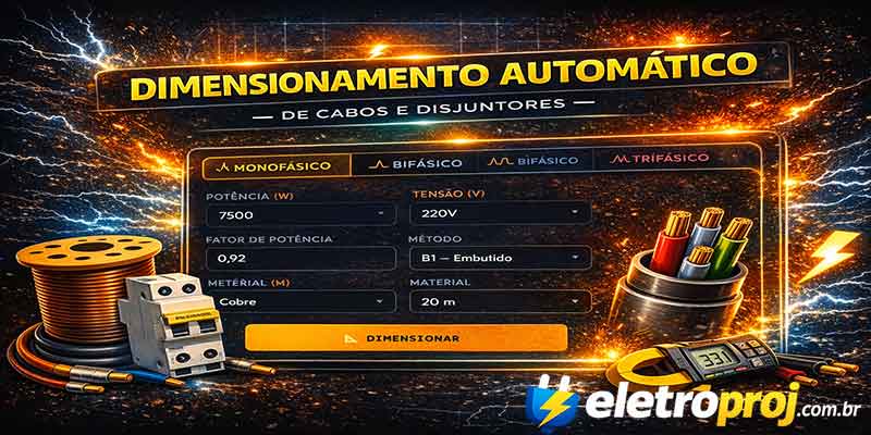 Esse módulo é especialmente útil para dimensionamento rápido em campo, quando o eletricista precisa definir cabo e disjuntor para um circuito específico sem consultar múltiplas tabelas separadamente.