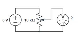 Problema: Um potenciômetro de 10kΩ está ligado como divisor de tensão com 5V no terminal 1 e GND no terminal 3. O cursor está posicionado a 70% do curso (partindo do terminal 1). Qual é a tensão no terminal central?